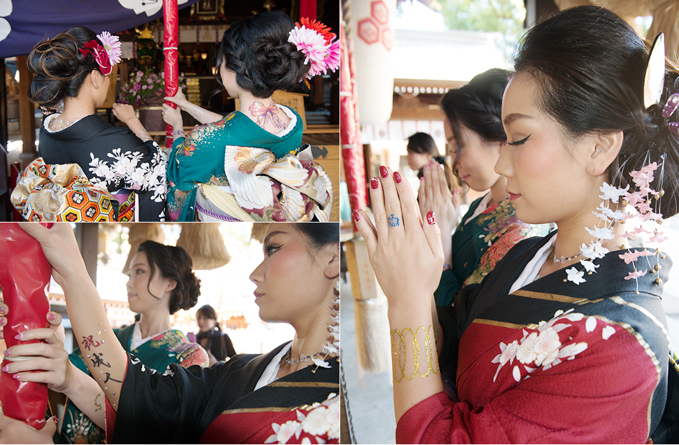 衿から覗く項にはネックレスのようにアクセサリー感覚のボディージュエリーをあしらいました。