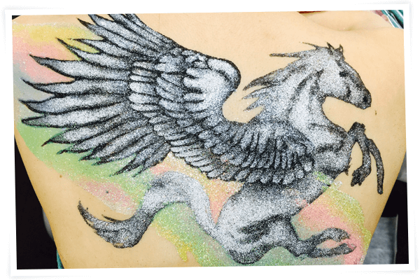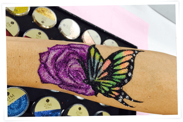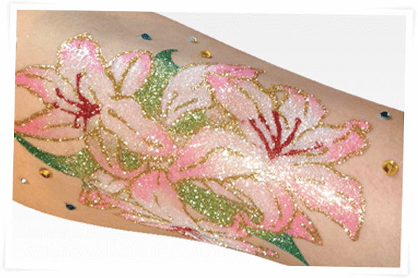 水彩画アートテクニックとは、水彩画特有の透明度の高い澄んだボディージュエリーを表現することが出来ます。柔らかい作品を作ることができるのでマタニティーボディージュエリーにとても向いています。